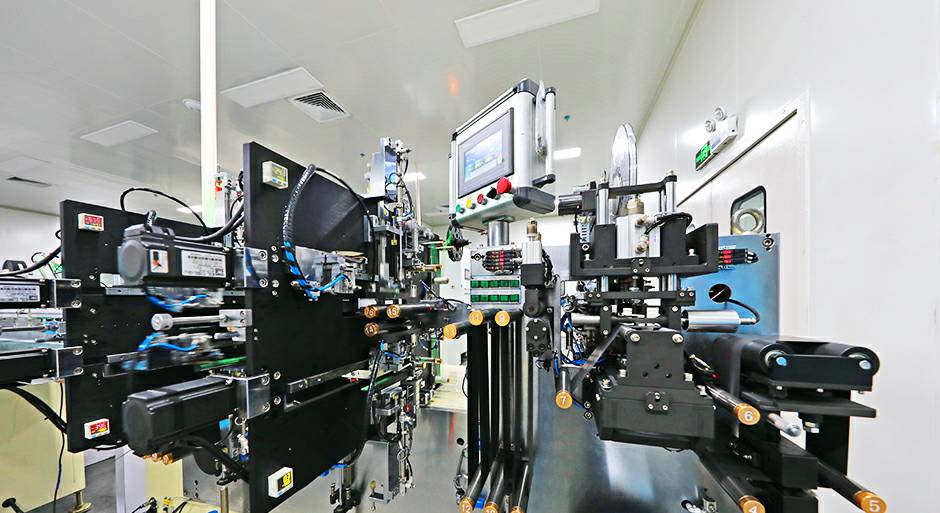 拥有自动制片机25台,包括送料装置,极片成型装置,取料装置,废料收集装置和控制装置。